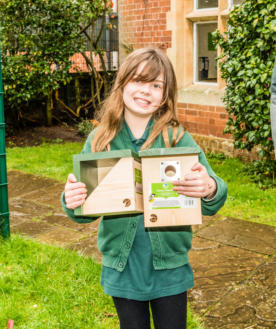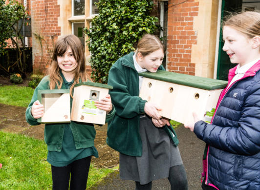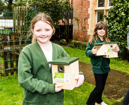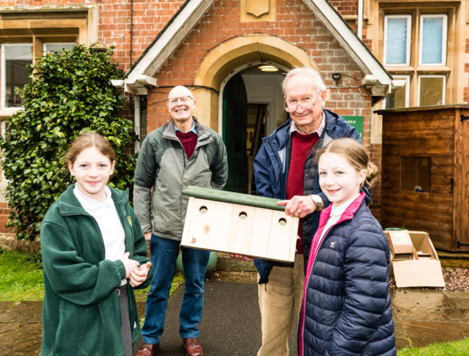 The Bird Boxes being handed over to the pupils of Drake’s School.