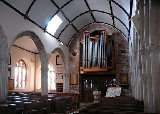 Bishop Lacey began to enlarge the church in 1420, adding the two upper stages of the tower and the north and south aisles. The fine wagon roof and the great west window