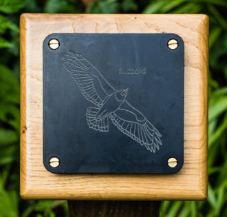 across the front of the farmhouse and you will see the sign post.